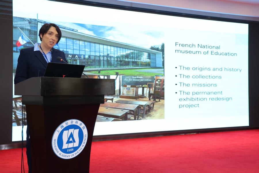 玛丽·布拉德(Marie Brard) 法国国家教育博物馆馆长,在上海社科院发表主旨演讲。